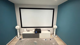 Situé à Paris dans un appartement, j'ai pu intégrer une TV miroir avec un système de son Sonos.